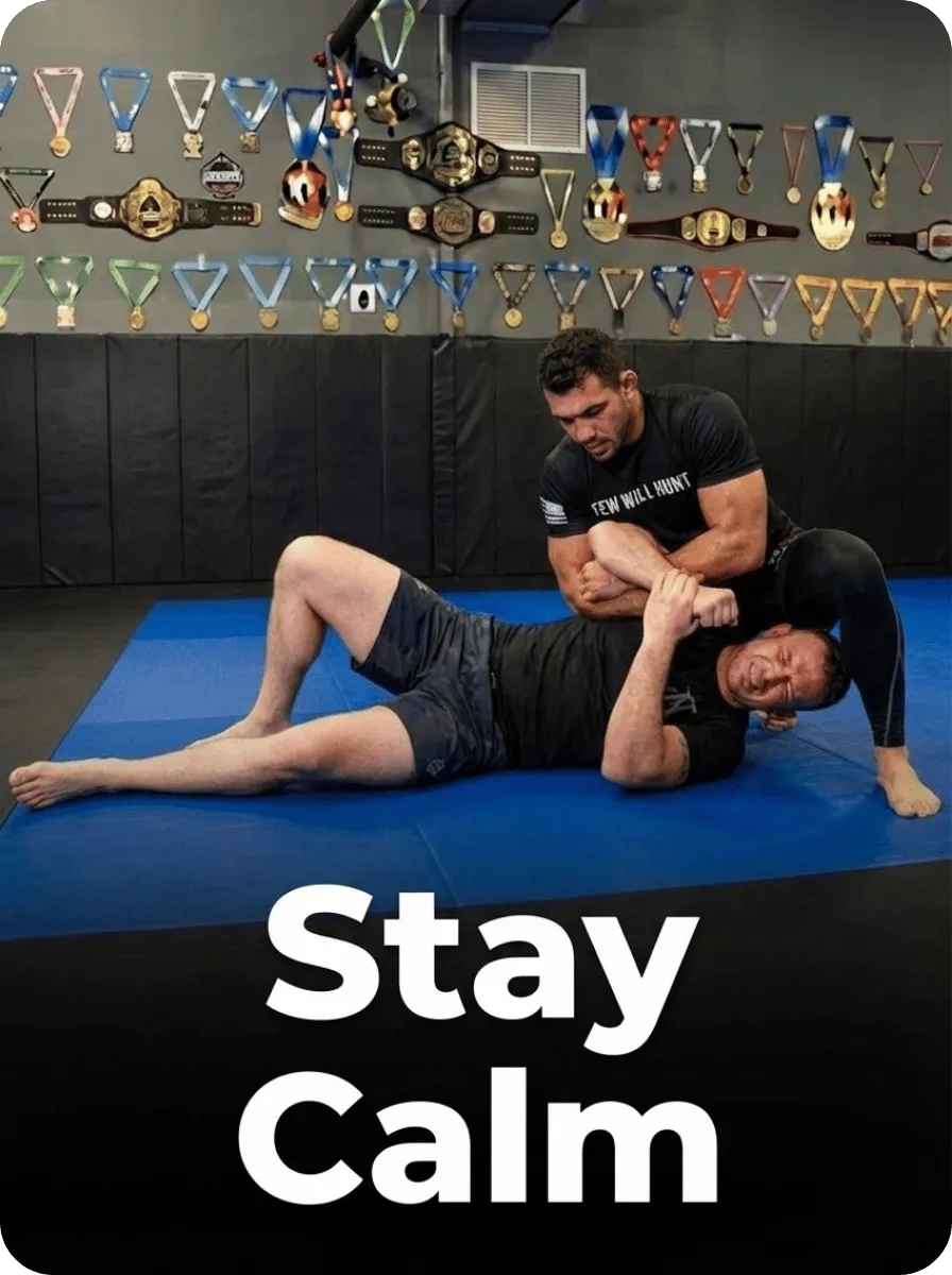 Train your nervous system to stay relaxed under heavy pressure, so panic doesn’t drain your energy when you’re stuck underneath.
